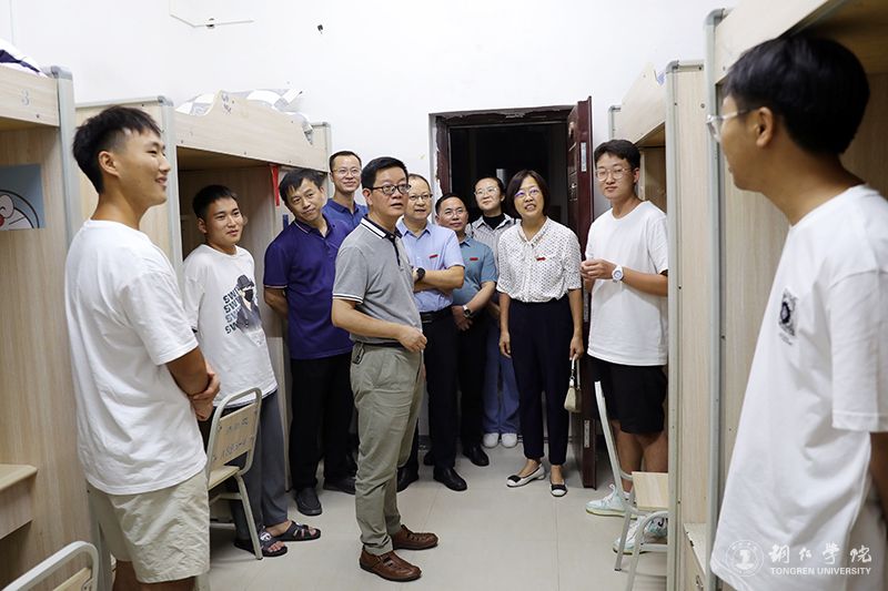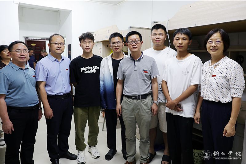 9月4日晚,学校党委书记朱洪波,副校长石维、罗静,党委委员、组织部部长梁正海,党政办主任周永雄,党委学工部副部长刘玉康一行到学生公寓楼,看望2023级本科生,并为当天生日的新生送上了生日礼物与祝福。
