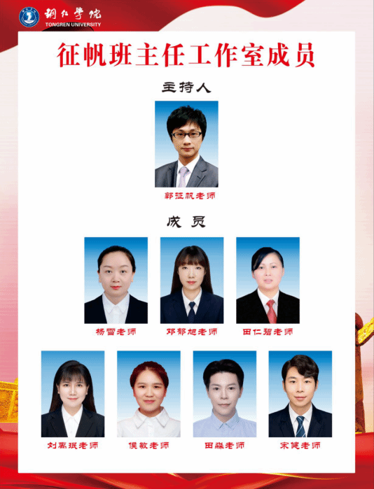 bv伟德国际1946“征帆班主任工作室”现有成员8人,党员占比100%,其中 5人具备高级职称,6人拥有硕士以上学历,团队平均年龄37岁,班主任工作经验人均超 8年。成员中既有荣获全省先进工作者、全省优秀共青团干部的德育骨干,也有获评贵州省高校辅导员年度人物、贵州省最美警嫂的育人典范。是一支政治立场坚定、专业功底扎实、育人成果丰硕、榜样力量突出的精锐团队,在党建引领、班级管理、心理疏导、家校协同等领域深耕多年,以多元的荣誉积淀与丰富的实践经验,持续发挥示范引领效能。