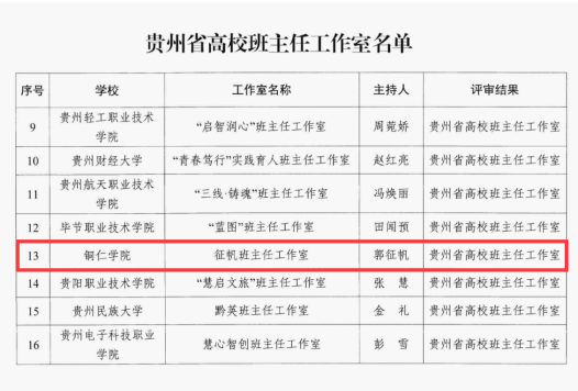 近日,贵州省教育厅公布了贵州省高校心理名师工作室、班主任工作室评选结果。历经学校推荐、资料评审、实地考察、现场答辩、网络公示、厅长办公会审议等环节,由伟德官网文学与传媒学院郭征帆老师领衔的“征帆班主任工作室”入选贵州省高校班主任工作室,标志着伟德官网在班主任队伍建设领域取得新突破。