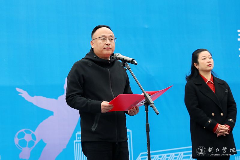 开幕式上,朱克乾宣布“bv伟德国际1946首届‘校长杯’学生校园足球超级联赛开幕”。运动员代表张鹭豪(铜仁市“梵超”足球联赛主力球员、大健康学院2025级体育教育专业学生)宣誓,承诺将以拼搏进取的态度参赛,严守规则、尊重对手,展现铜院学子的体育风采与道德风貌。裁判员代表田建超(大健康学院2024级体育教育专业学生)郑重宣誓,保证秉持公平、公正、公开原则执裁,为赛事保驾护航。党委委员、党委学工部部长张钱主持开幕式。