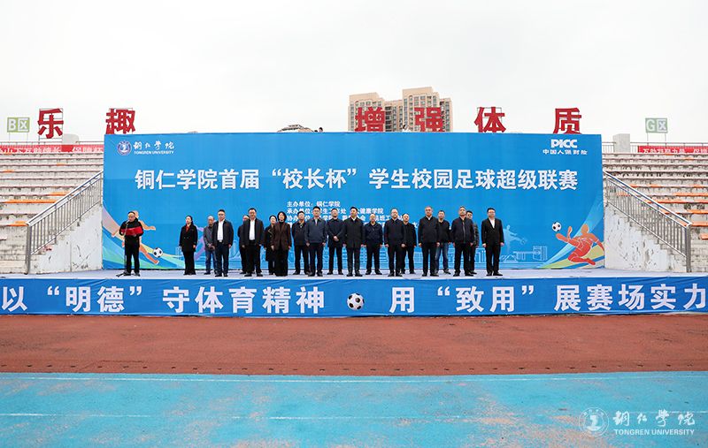 11月5日,伟德官网首届“校长杯”学生校园足球超级联赛在田径场正式拉开帷幕。党委书记朱克乾、校长石维等学校党政领导班子成员和全体党委委员,中国人民财产保险股份有限公司铜仁分公司总经理陈开龙出席开幕式。各二级学院领导班子、相关职能部门负责人,以及各参赛队伍、裁判员、工作人员、师生代表参加开幕式。