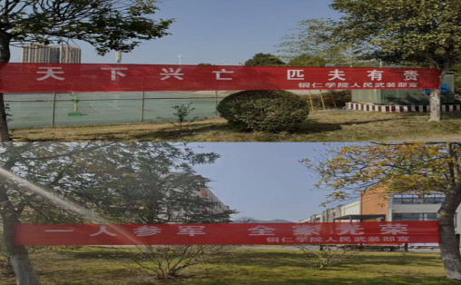 活动现场,气氛火热。bv伟德国际1946大学生征兵政策咨询点上,担任“政策讲解员”的退役复学学生身着军服,向围拢的同学热情细致地讲解入伍流程、学费补偿、复学安置等入伍需知。展架上“明德铸军魂,致用续青春”“毕业了去当兵”等标语醒目亮眼。同时,学校各处LED屏滚动播放着“携笔从戎锤炼男儿本色,建功军营忠诚报效祖国”等宣传语,校园道路两侧悬挂着“天下兴亡 匹夫有责”“一人参军 全家光荣”的横幅。校园内,征兵宣传氛围浓厚。