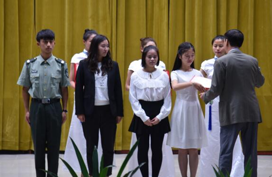 随后,在庄严地国歌声中举行了颁奖典礼。铜仁市委常委、副市长牛建国作了讲话,他表示,和平与发展是当今时代主题,不赞同多数国家持有的“中国威胁论”。他向同学们提出两大希望:一是要有忧患意识,以史为鉴,时时警醒自己,为祖国国防建设贡献自己的力量;二是要敢于追梦,中国梦是国家全民族的梦,希望同学们奋发努力,为实现中国梦不懈奋斗。