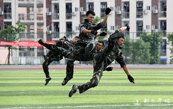 伟德官网2017级参加军训的学生有2100余人,分为6个营、22个连。烈日酷暑下,他们在田径场进行了为期半个月的军事训练,训练内容主要包括站军姿、队列训练、军体拳、擒敌拳、应急疏散、内务整理、唱军歌等。