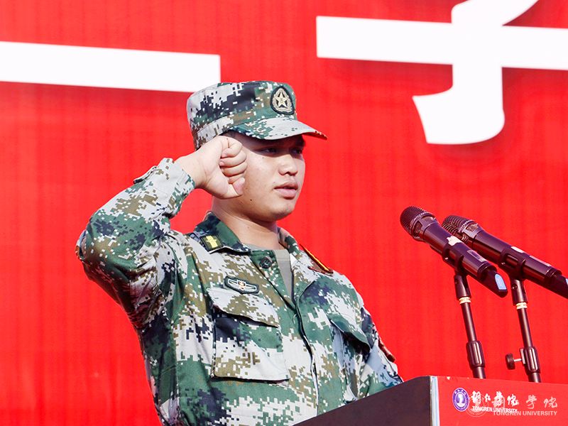 学生代表、2025级新生军训团二十连学员唐婧甜宣誓,表示全体学员将严守纪律、刻苦训练,传承精神、团结互助;以汗水锻造品格,用行动彰显担当,争做有理想、敢奋斗的新时代青年。