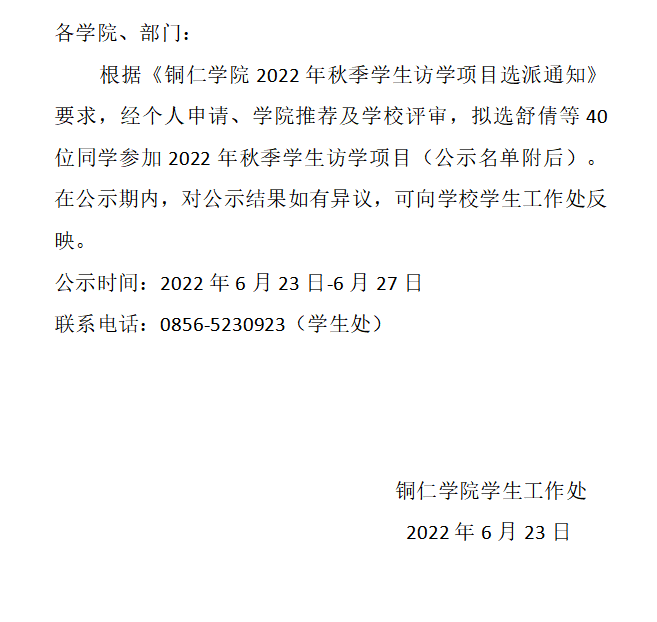 bv伟德国际19462022年秋季学生访学项目 选派学生名单公示