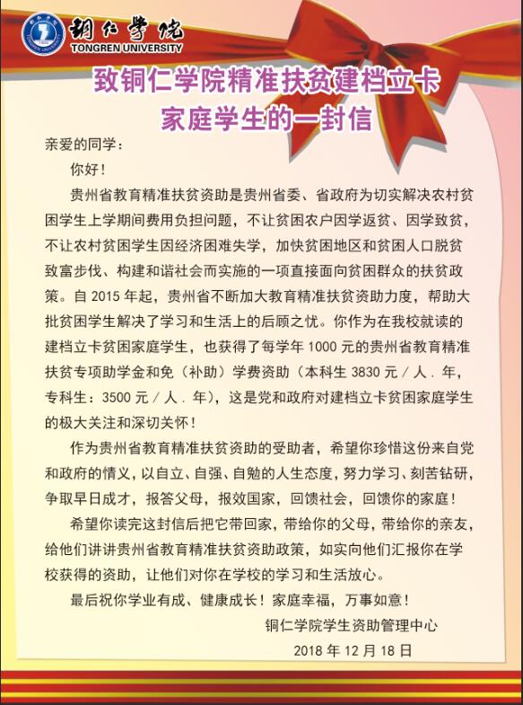 致bv伟德国际1946精准扶贫建档立卡家庭学生的一封信