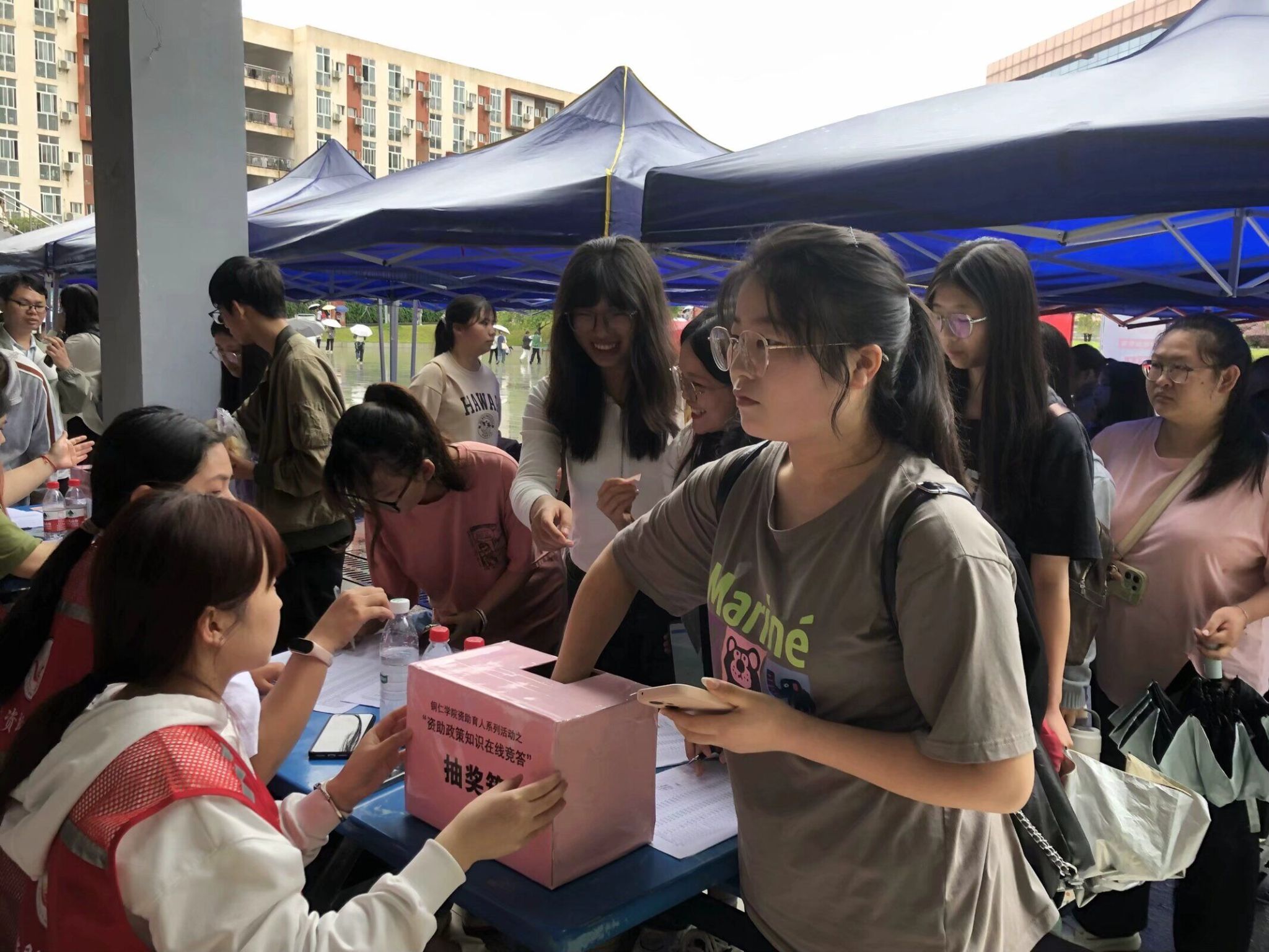 在线竞答于5月20日19:00—21:00通过学习通平台进行,吸引了3500余名学生参与,以线上随机生成题目的形式进行竞答,题型分为单项选择题、多项选择题和判断题三种类型,涵盖了奖、勤、助、减、补、贷等资助体系的相关政策知识。此次线上竞答回收有效答卷达95%,得分在80分以上者近500人。现场竞答于5月30日11:00—14:00在学校丹桂食堂一楼进行,吸引了1600余名学生参与,采取随机抽取题目现场竞答形式进行,学生们竞相答题,活动现场气氛热烈。