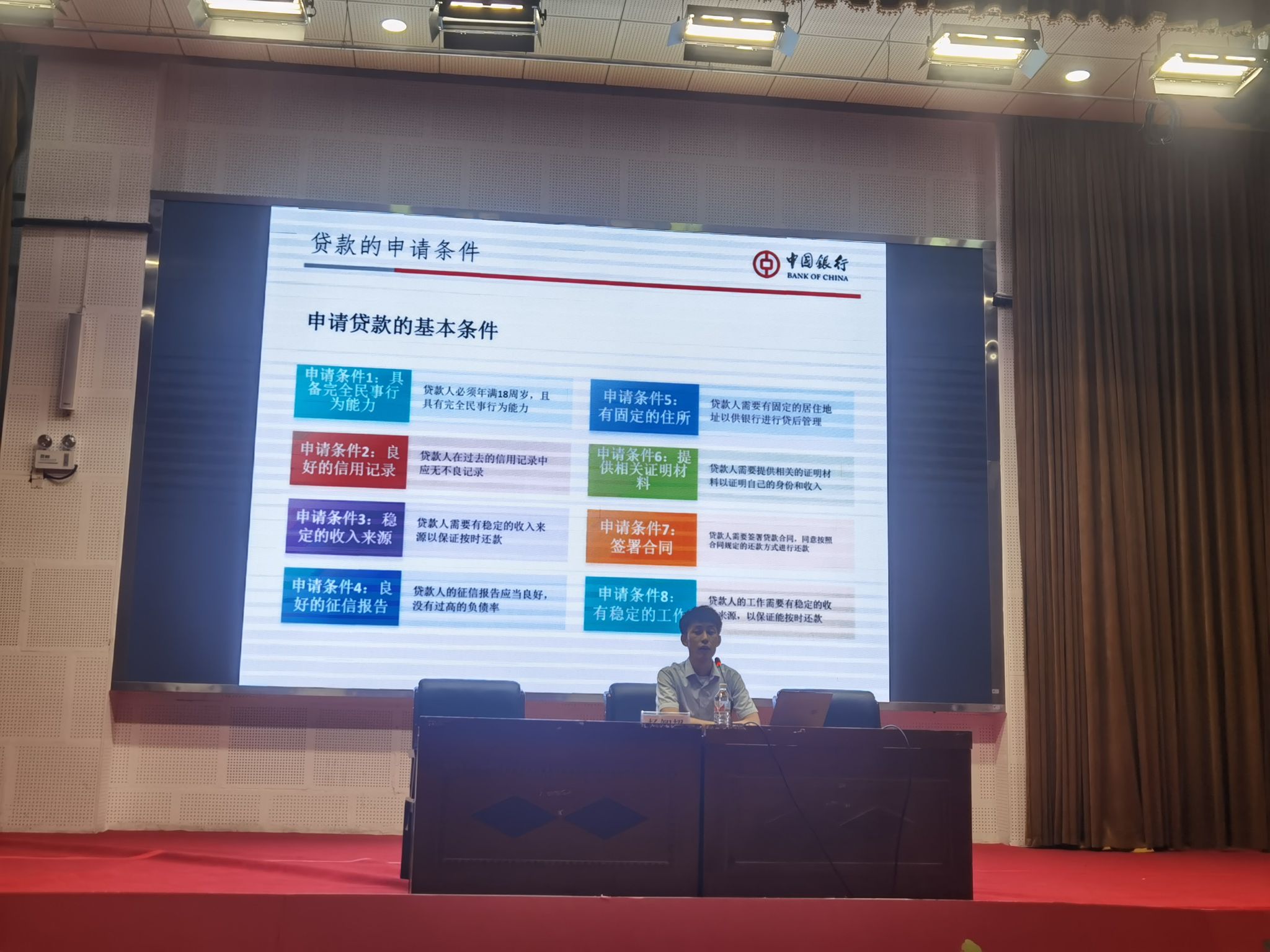 随后,主讲人杨智超围绕“诚信贷款”主题向同学们详细介绍了信用贷款的申请流程、还款方式、利率等事项,并强调了诚信还款的重要性。同时,讲座现场还通过案例分析、互动问答等方式,让同学们更加深入地了解信用贷款的利弊和风险。