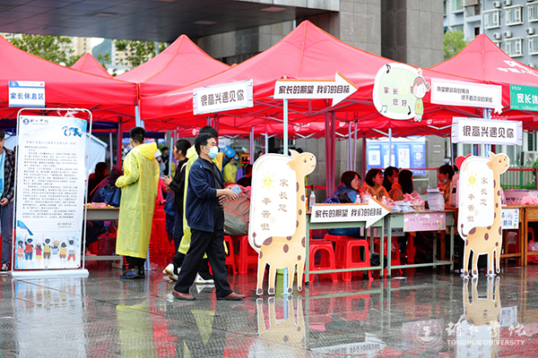冒着风雨,工作人员摆放展板、撑开帐篷、摆放桌椅、调试设备、悬挂横幅等一系列准备工作,在新生到校之前早已做好。今天,一大早,各二级学院、相关职能部门、学生服务团队便已守在迎新点。