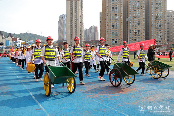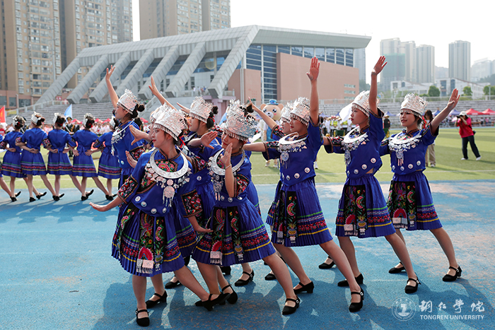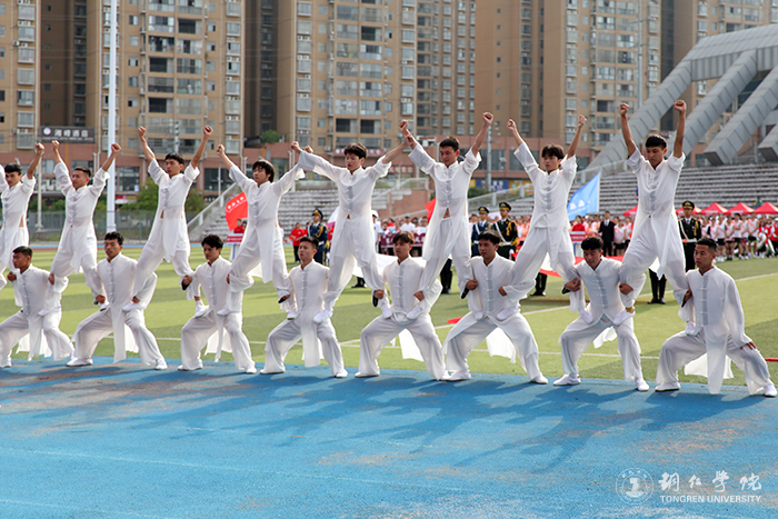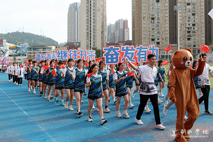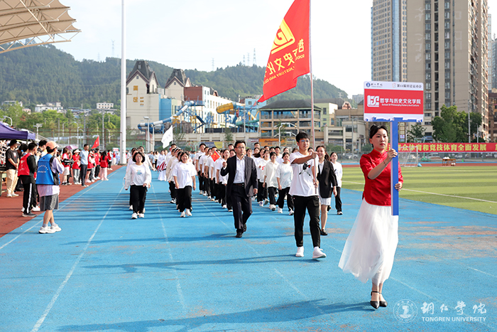 在激昂的音乐中,伴随着主持人振奋人心的解说,国旗、校旗、会旗方阵,二级学院方阵,以及教师代表方阵、裁判员方阵携着饱满的精神,喊着嘹亮的口号,迈着整齐的步伐,井然有序、昂首阔步地走过主席台。11个二级学院的学生演员身着极具特色的服饰,为观众带来了汉服舞、民族舞、啦啦操、武术表演等彰显专业特色的精彩节目,表演中尽显伟德官网师生朝气蓬勃的精神风貌。