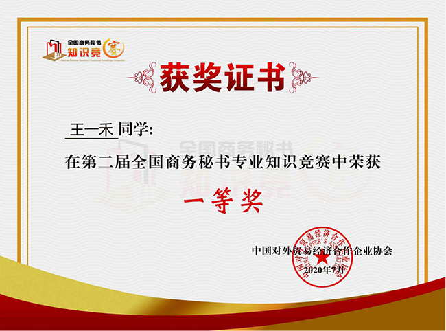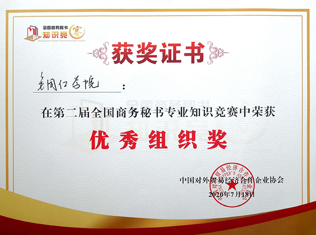 全国商务秘书专业知识竞赛由国家一级行业协会中国对外贸易经济合作企业协会主办,是以推动商务秘书专业建设,全方位培养院校学生综合职业素养,和“以赛促教、以赛促学、以赛促交流、以赛促就业、以赛促进步”为宗旨,针对应用型本科院校秘书学专业、职业院校文秘专业及相关专业在校学生的全国性学科知识竞赛。