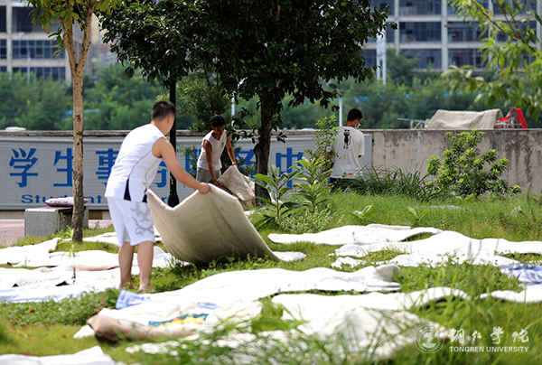 学生晾晒被子