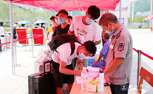 返校当天一早,工作人员已在学校南门提前设置了学生休息区、学生返校专用通道、遮阳帐篷、体温观测点、临时观察区,校医务人员、后勤保障队、应急处置队也全部到位,各个工作组协调配合,确保学生平安顺利完成入校手续。
