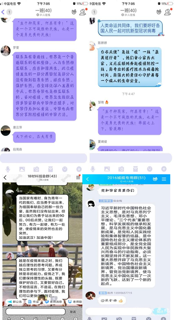 教育学院学生刘露说:“我们作为90后的一员,应该时刻怀揣着“家国情怀,有国才有家。不能上一线,就做好自己力所能及的事,不给国家添堵添乱。我相信在党的领导下,我们大家凝聚力量,坚定信心,就一定能打败病毒,取得防疫战的全面胜利!”