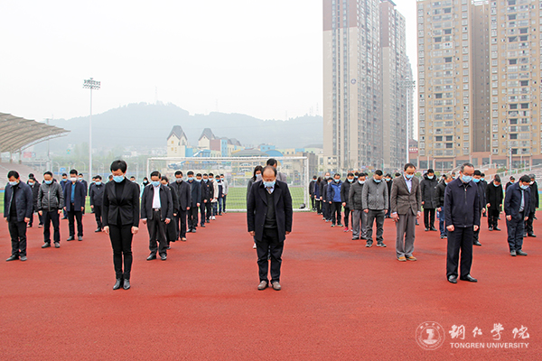 4月4日上午,伟德官网在体育场举行哀悼活动,悼念在抗击新冠肺炎疫情斗争中牺牲的烈士和逝世的同胞。校长侯长林、党委副书记代亮、副校长罗红芳,全校副处级及以上领导干部,在校师生参加活动。
