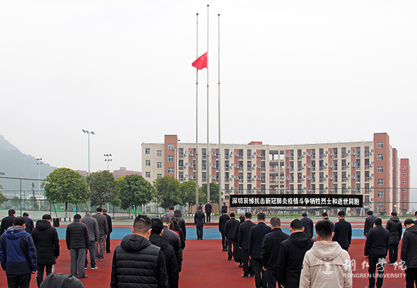 10时整,防空警报鸣响,学校下半旗志哀,参加活动的全体师生默哀3分钟,向在抗击新冠肺炎疫情斗争中牺牲的烈士和逝世的同胞表达深切悼念。