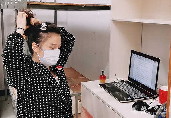 国际学院杨婷老师虽然早已经准备好了3月2日周一的线上课程内容,但当天还是早早地起了床,想调整增加一些线上课程内容,并尝试各种线上学习的交流工具,希望能够获得更好的线上教学效果。她感言道:“作为一名教师,不论身在何处,始终会想到学生,想到怎样能够让学生不受疫情的影响,通过线上学习获得同样甚至是更好的学习效果。相信这也是每一位铜院教师共同而为之努力的。”