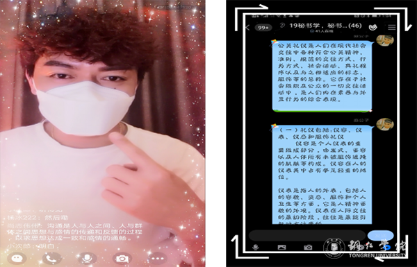 龙黎是艺术学院的一位老师,在线上授课之前,她花了20分钟的时间精心准备了自己的妆容。作为一名班主任,为了给学生树立一个好的榜样,在每次班会课之前她都会精心整理一番。她说道:“作为一位班主任,把最好的状态展示在学生的面前,传递的是一种对学生的尊重,传递的是对生命的那一份热爱。虽然只能在线上开班会课,周边的环境也略显简陋,但我想让学生们知道,只要我们心存美好,终将走过寒冬,春回人间!”