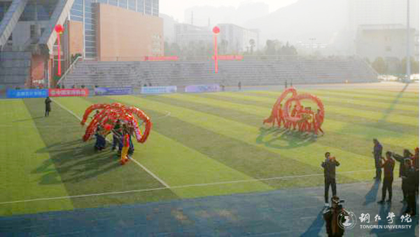 开幕式前,为了表示对来自全国各老年足球运动员的热烈欢迎,大健康学院学生志愿者组织的啦啦操团队、龙狮队进行了展演。