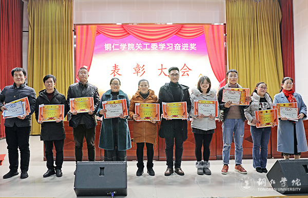 为了培育学生奋进精神,构建良好学风,学校校关工委于12月25日下午在梵净山人文生态馆举行了2018—2019学年度“学习奋进奖”表彰大会。校党委副书记代亮;校关工委常务副主任谭光涛,副主任谢元炳、贾文凤、杨光大、邹娟、冯云光;各二级学院党委书记、学生科长、优秀班主任和获奖学生近300人参加了大会。校关工委秘书长、学工部副部长刘玉康主持大会。