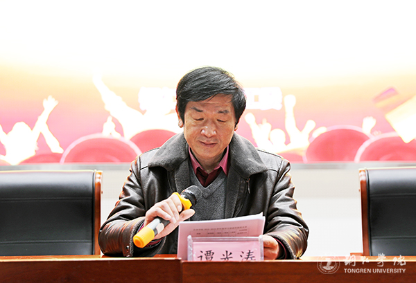 学校关工委常务副主任谭光涛宣读表彰文件