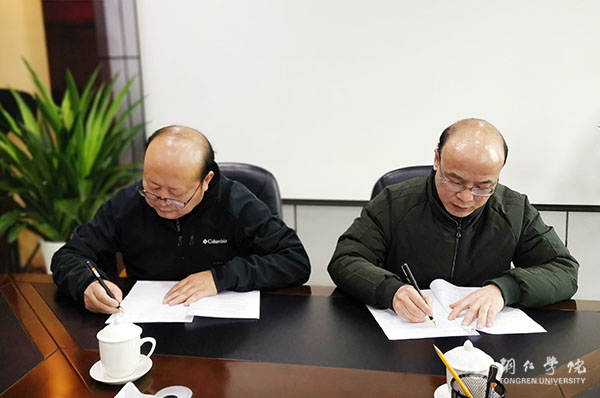 人文学院院长田黎星与铜仁广播电视台台长侯长青签署协议并共同挂牌。铜仁广播电视台总编辑张春阳、副台长黄健、副总编辑王全香、总编调度指挥中心主任吴江明、采访中心主任唐树华、编辑制作中心主任肖霞、创新研发中心主任李睿,人文学院副院长白俊骞、院党政办主任冉显礼、网络与新媒体教研室主任田俐及教师张潇叶出席签约仪式。