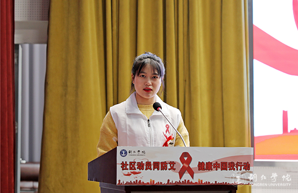 伟德官网防艾志愿者金倩宣读倡议书