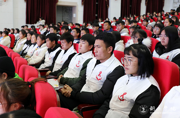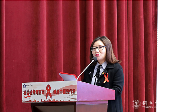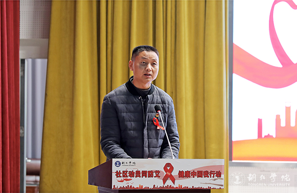 仪式上,蒋旭军作了讲话。他指出,新时代大学生肩负着对未来社会建设的重任,要提高对防治艾滋病的认识,增强自我保护意识和预防艾滋病的方法,为防治艾滋病工作打好攻坚战,遏止艾滋病在身边发生,促进大学生的身心健康发展。他希望,大家要从艾滋病疫情和开展预防控制活动的实际出发,认真学习“四免一关怀”政策,积极配合各类医疗机构、疾病预防控制机构做好宣传防艾工作,努力构筑起防御艾滋病的坚固长城;要认真学习防艾知识,从防艾的一系列主题活动中受到教育、得到启发,树立正确态度,增强自我保护能力,真正参与到防治艾滋病的工作中去。