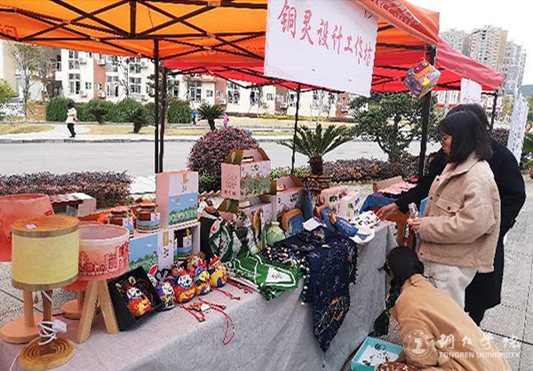在苗绣工坊、铜灵设计工坊展区,美术学、视觉传达与设计等专业的同学现场展示了他们设计并创作的精美刺绣、木玩作品及其他文创作品,吸引了大批观众驻足,并现场收获了一大批加工订单。据介绍,该工作坊还开展了多种多样“传统文化进校园”活动。