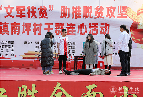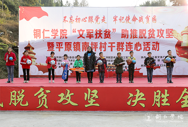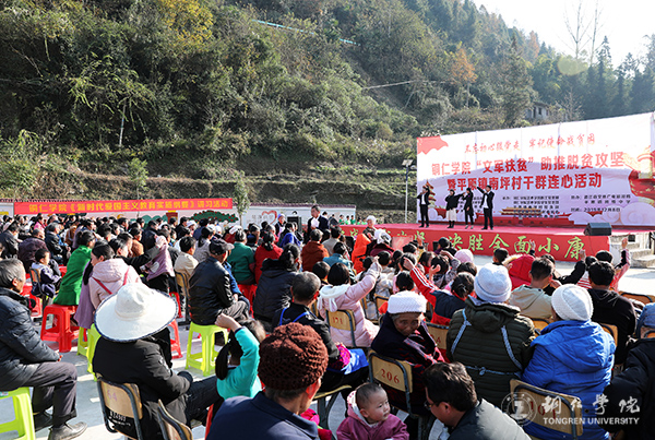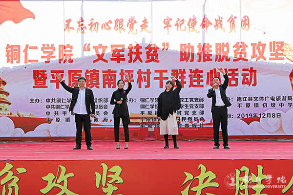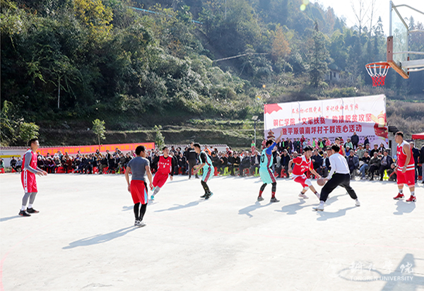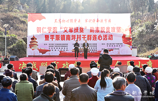 不忘初心跟党走,牢记使命战贫困。12月8日,德江县平原镇南坪村里热闹非凡,全村男女老少欢聚一堂,一派欢乐和谐的景象。伟德官网“不忘初心、牢记使命”主题教育“文军扶贫”助推脱贫攻坚暨干群连心活动走进南坪村,给村民带来了精彩的文艺演出、篮球赛事等文化活动,为村民送去了慰问和温暖。活动现场,学校师生、扶贫干部与村民一起,感受热烈氛围,共话同心发展。