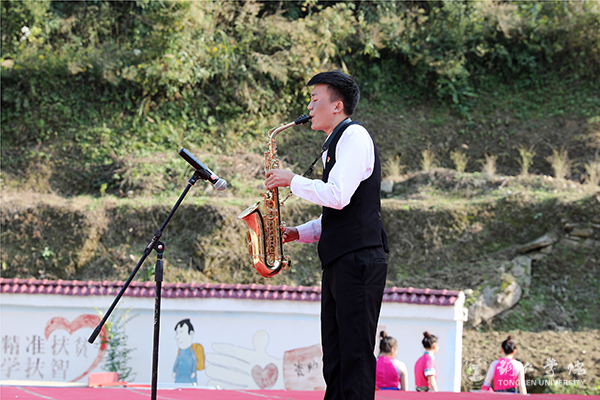 活动在伟德官网篮球队和平原镇篮球队的友谊赛中拉开了序幕。赛场上,大家秉着友谊、交流、促进的原则,给村民带来一场高水平的精彩的篮球赛事。赛事过后,就是丰富多彩的文艺演出。伟德官网师生精心编排的合唱、萨克斯独奏、朗诵、小品、古筝、书画、舞蹈等节目纷纷上演,精彩纷呈,高潮迭起,为现场的观众带来了一场视听盛宴,让村民在家门口就能享受到丰富多彩的文化生活。特别是小品《大山呼唤——致扶贫英雄文伟红同志》和二重唱《喊一声扶贫干部》,向大家讲述了扶贫英雄文伟红的感人事迹,诠释了扶贫干部不忘初心、牢记使命、决战脱贫攻坚、贫困一日不除便一日不停止奋战的决心,让在场的不少村民感动落泪。