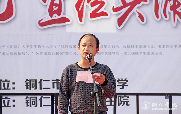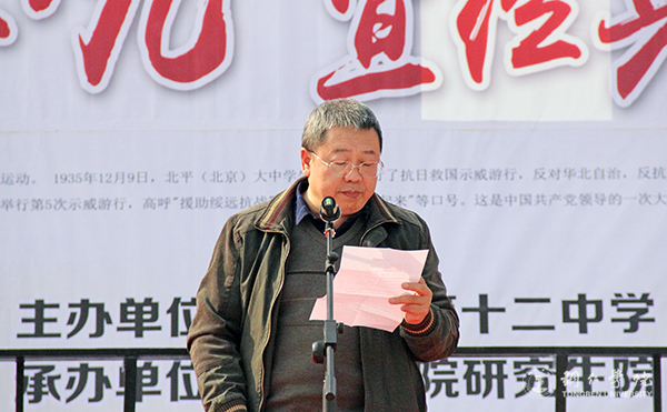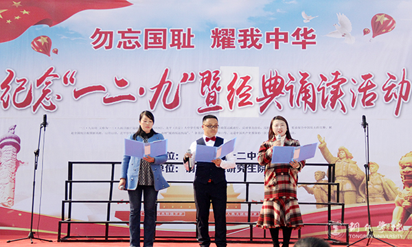 活动上,刘晓红致开幕辞。他说,84年前的12月9日,数千热血青年英勇地走上街头发出“停止内战、一致抗日”的正义呼声,掀起全国抗日救亡运动的新高潮,这场学生爱国运动,凝聚了青年学生们崇高的爱国情怀,展现了中华民族反抗侵略、争取独立的坚定决心。学校开展纪念“一二•九”运动经典诵读活动,就是希望同学们继承革命传统、发扬爱国精神、树立强国之志。