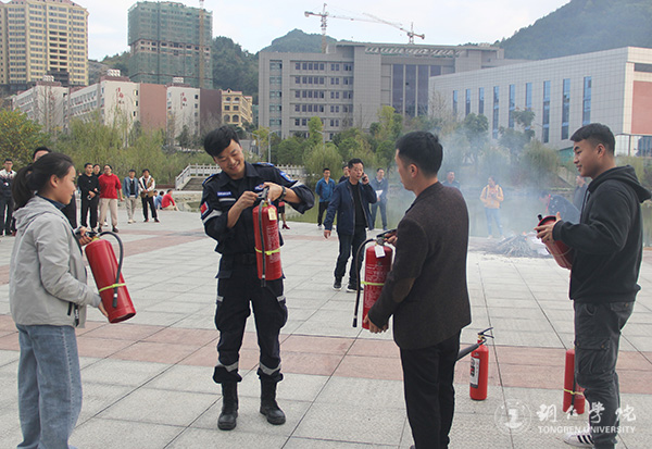 消防安全逃生演练后,贵州全民安居消防知识宣传服务中心李儒鹏教官为大家演示了正确的火灾逃生姿势以及如何正确使用消防器材。他强调,要在日常工作生活中加强训练,有效掌握在危险环境中迅速逃生、自救、互救的基本方法,提高抵御和应对紧急突发事件的能力,一旦身边发生突发事件,一定要沉着冷静。通过他的讲解和演示后,部分师生亲身体验了消防灭火器的使用操作步骤。
