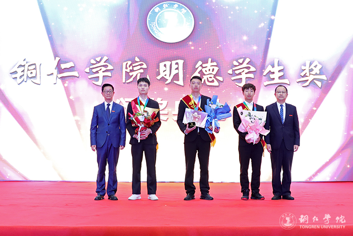 在2022年(第八届)“明德学生奖”获奖者当中,有荣获2021年贵州省“最美大学生”称号的王满怀;有以第一作者发表SCI论文的游敏;有全班共60人、45人参加研究生考试、37人达到国家线、20人被录取的考研“学霸班”2018级食品科学与工程班;有积极投身疫情防控工作,连续三个月深入碧江区川硐教育园区15个核酸采集点开展核酸采集工作的核酸采集志愿服务队;还有荣获2021年全国大学生数学建模竞赛本科组二等奖的数学建模团队,荣获第十四届全国大学生结构设计竞赛三等奖的结构设计团队,在第十三届中国大学生舞龙舞狮锦标赛中获女子舞龙自选套路、规定套路铜牌和女子团体总分第二名的女子舞龙队,以及由32名退役士兵组成并圆满完成新生军训、征兵宣讲、国旗护卫、预征班训练、疫情期间校园管控和校园重大活动安全保障等工作的明德飞鹰大队。他们在精神文明、科研创作、科技艺体、创新创业、学习模范等方面,用实际行动践行“苦心励志、追求卓越”的bv伟德国际1946精神,给大家作出了很好的示范引领,不断激发着全体师生奋勇前进。