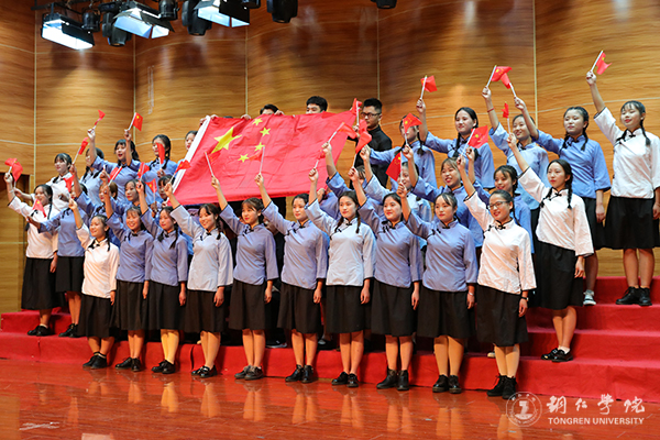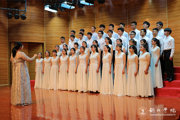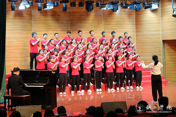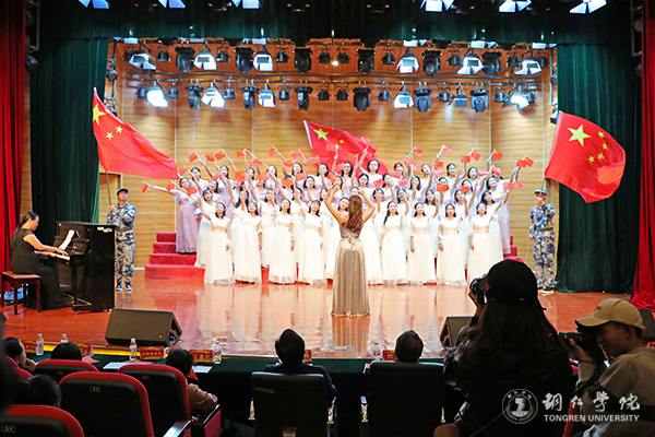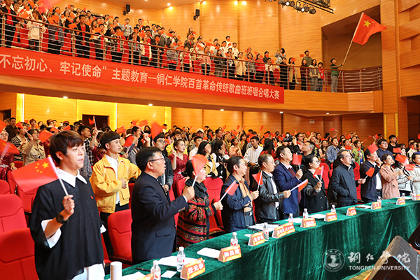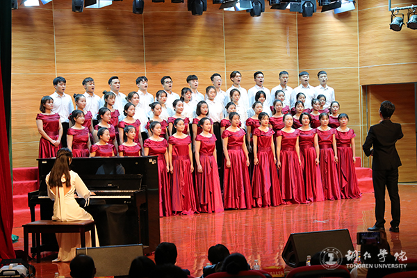 此次比赛是在经过一个多月的班班传唱百首革命传统歌曲系列活动后,由10个学院各选派一支代表队参赛并选取2首歌曲进行演绎。比赛过程中,全场气氛热烈、精彩纷呈。《我和我的祖国》《今天是你的生日》《我爱你中国》《赞赞新时代》《我的中国心》《在希望的田野上》等一首首耳熟能详、振奋人心、充满了情感与力量的革命传统歌曲,被同学们尽心尽情地演绎。同学们时而舒缓、时而欢快、时而激昂,将对党、对祖国的热爱之情融入了歌声之中,深深打动着每一位观众的内心。同时,各参赛队伍还在合唱中加入钢琴伴奏、笛子演奏、朗诵、书法表演等元素,结合领唱、伴唱等形式,让合唱大赛内容更丰富,气势更磅礴,形式更具感染力。赛后,艺术学院表演队伍带来的《娄山关》《高原我的家》再次将现场气氛推到高潮。最后,全场师生挥舞着手中的国旗,一起高声唱响《我和我的祖国》,嘹亮的歌声回荡在整个会场,浓浓的爱国情流淌在每一位师生的心中。