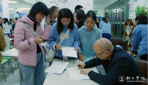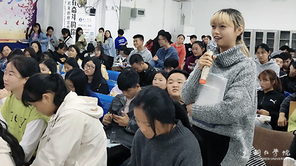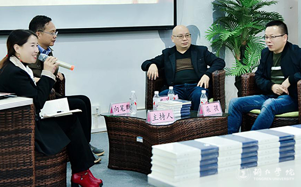 在互动环节,到场的同学纷纷举手提问,请各位嘉宾为自己解答读书和写作方面的困惑。19级新生吴小红同学说,初到大学参加这样的活动,与大家一起分享读书体会、聆听作家畅谈创作经验感觉特别棒,不知这样的活动以后会不会继续开展下去。孙向阳回答了她的提问,他说,这样的活动已经举办了八期,为宣传铜仁本土作家的新作提供了平台,为传播铜仁本土文化提供了平台,也为bv伟德国际1946的各位学子更好地读书和写作提供了一个学习和交流的平台,活动取得了很大成功,得到了社会各界和各类新闻媒体的支持,获得了校内校外的广泛关注和好评,大家都觉得这样的活动对文脉赓续和文化传承很有意义。因此,写作研究院将不竭余力打造好这一活动平台,让它真正成为铜仁文学文化传播中心和同学们的精神家园。