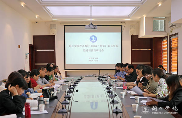 10月11日,伟德官网校本教材《阅读·欣赏》新书发布暨通识教育研讨会在行政楼8520会议室召开。副校长罗红芳、教务处副处长李强、写作研究院全体教师、《阅读·欣赏》编委会成员及全校写作与沟通教师团队成员参加了会议。会议由写作研究院副院长、《阅读·欣赏》总策划孙向阳主持。