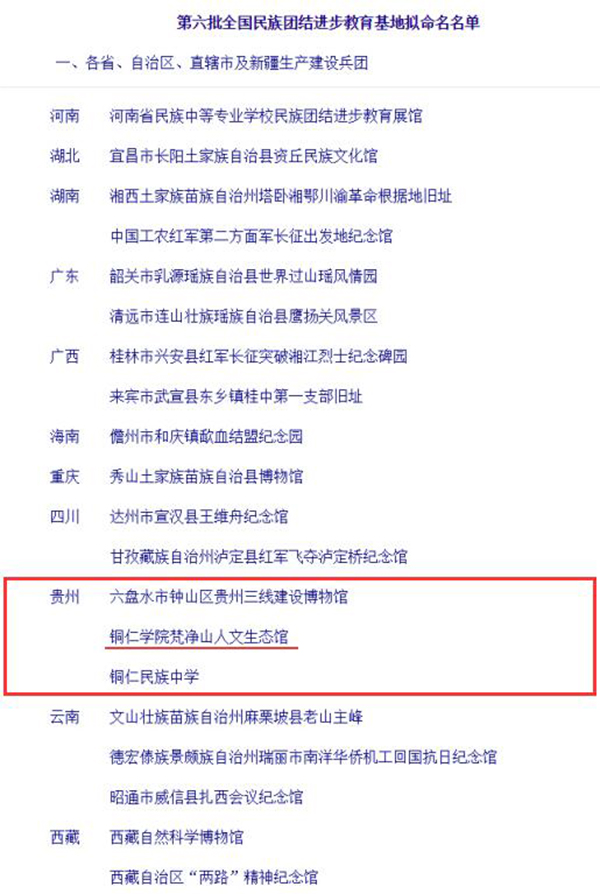 日前,国家民族事务委员会发布了《第六批全国民族团结进步教育基地拟命名名单公示》,全国共有61家单位入选,其中贵州省有3家单位入选,伟德官网梵净山人文生态馆名列其中。