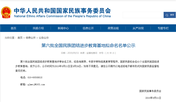 国家民宗委网站公示截图