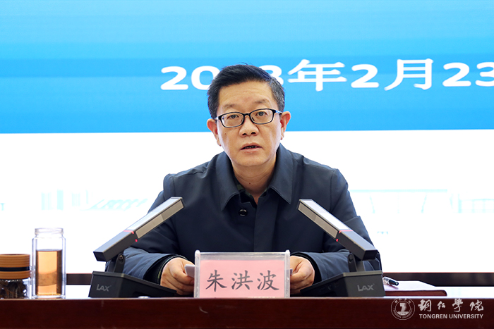 朱洪波指出,2023 年是全面贯彻党的二十大精神的开局之年,是实施 “十四五”规划承上启下的关键一年,也是学校推动高质量发展的重要一年。他就学校新一年的工作,讲了两点意见。一是要认清形势,把握大局,鼓足信心谋发展。要坚定信心,抢抓机遇,始终坚持以高质量发展统揽全局,盯牢战略发展目标,秉承“小而精”办学理念和“育人为本、科研先行”发展战略,紧扣“提升办学层次,聚焦内涵发展”目标任务,深入实施“十四五”规划,全力推进博士学位授权建设单位申报,认真谋划和推进学校下步的改革和发展。二是要履职尽责,转变作风,全力以赴抓落实。做好开学准备各项工作,事关学校全年工作,事关学校高质量发展和稳定发展。要抓早抓实迎接新学期、善谋善为开创新局面、苦干实干努力创造新辉煌,还需要有战略思维、前瞻思维、辩证思维、系统思维。他强调,全校上下要更加坚定加快发展信心决心,鲜明树立担当作为实干导向,以等不起的紧迫感、慢不得的危机感、坐不住的责任感,立足职能实际,全力以赴、全心投入,敢闯敢为、奋勇争先,确保各项工作有力有序、高效推进。