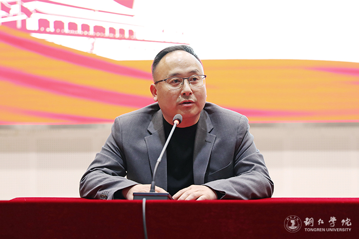 3月9日下午,党委书记朱洪波在梵净山人文生态馆讲授2023年春季学期“开学第一课”。他强调,要坚定前进信心,立大志、明大德、成大才、担大任,努力成为德智体美劳全面发展,有真才实学,有真正本领的时代新人,肩负起国家和民族的希望。党委学工部部长张钱主持;各二级学院分管学生工作领导、团总支负责人、团学干部、学生代表300余人到场聆听。
