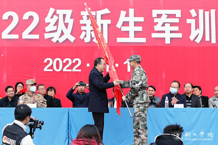 最后,代亮向军训团授旗并宣布开训。伴随着激昂嘹亮的《中国人民解放军军歌》,动员大会落下帷幕,新生军训正式开始,全体受训学生将接受为期21天的军事训练和国防教育。