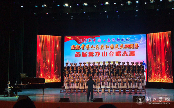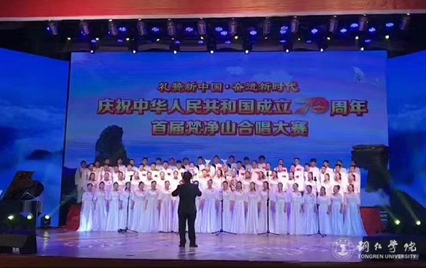 9月29日,“礼赞新中国·奋进新时代”铜仁市庆祝中华人民共和国成立70周年暨首届梵净山合唱大赛在铜仁幼儿师范高等专科学校举行,19 支进入总决赛的队伍依次登台献艺,用歌声为新中国成立70周年献礼。经过紧张的比赛,伟德官网合唱团最终以98.63分的好成绩荣获一等奖。