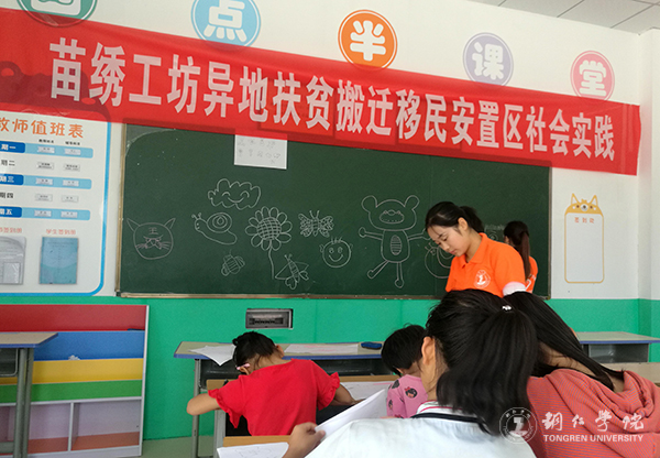 烈日当头,热情似火。今年暑假期间,伟德官网艺术学院9名学生组成了“苗绣工坊”志愿服务实践队,走进铜仁市碧江区灯塔街道矮屯易地扶贫搬迁安置区开展了为期十天的“三下乡”社会实践活动。