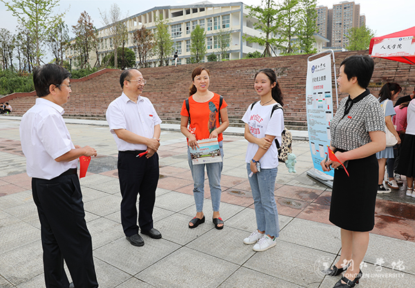 校领导在新生报到现场