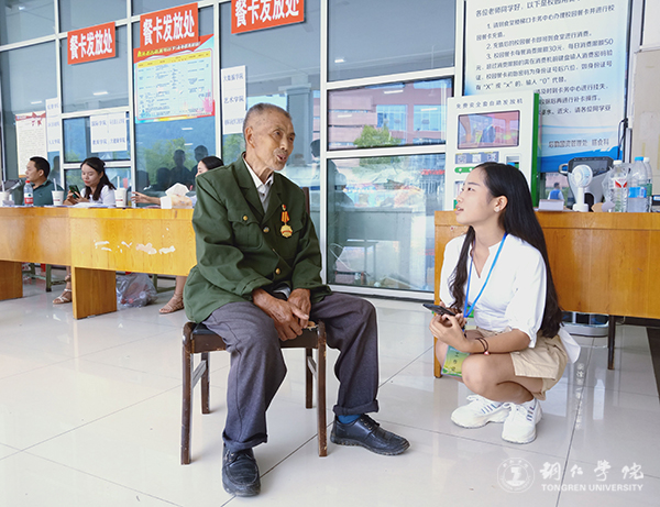 经过与老人家交流,笔者了解到,老人家是福泉人,姓刘,今年83岁,今天特地来送孙女入学报到,一同前来的还有老人家的儿子儿媳。报到现场,老人家找个角落坐下,静静等待着儿子儿媳给孙女办理报到手续,脸上洋溢着幸福的笑容。