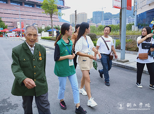 志愿者带领老人家一家人前去报到