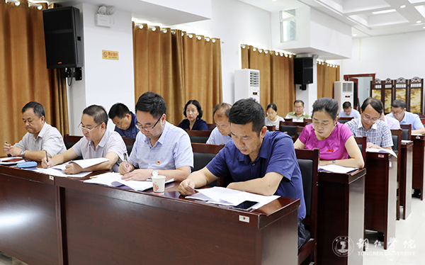 会议指出,按照中央、省委统一部署,此次主题教育从2019年9月开始,11月底基本结束,开展集中教育时间不少于3个月。主题教育以校院两级党委、各党总支和副处级以上党员领导干部为重点,示范带动广大党员、干部的学习教育。各二级学院党支部、设有党总支的党支部重点抓实抓好学习教育和检视整改。党群行政教辅部门党支部除抓好学习教育和检视整改外,还要牵头抓好部门班子的主题教育。
