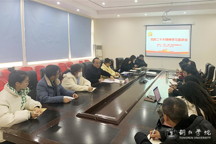 12月5日,党委副书记代亮在明理楼A三楼会议室,为国际学院师生代表宣讲党的二十大精神。国际学院党政领导班子成员、科级干部以及部分师生代表聆听宣讲报告。